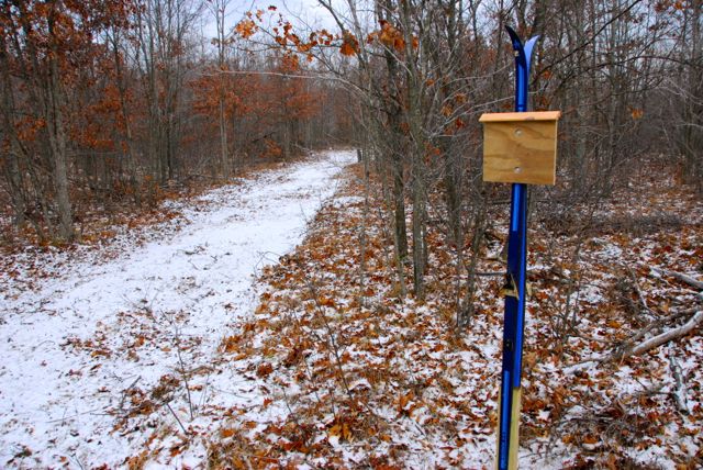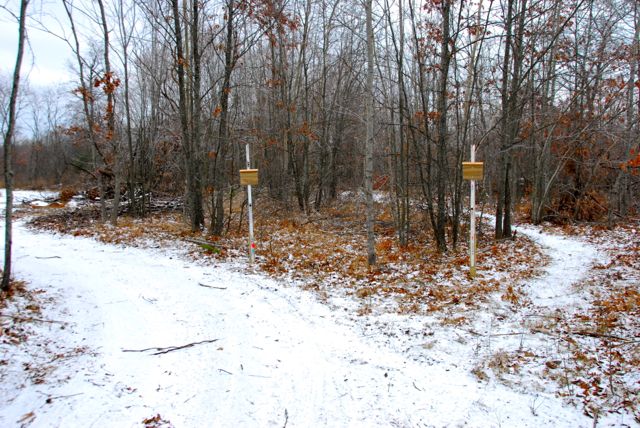 Lastly, because the ski trail crosses 9 Mile Bridge Rd (a snowmobile trail) we installed big reflective “No Motor Vehicle” signs at the two intersections where we cross 9 Mile.